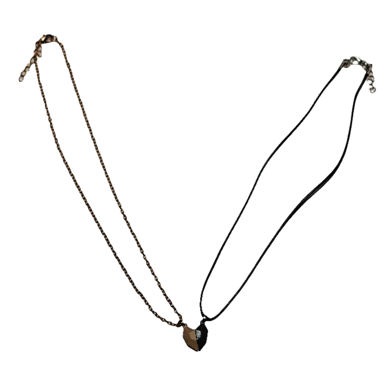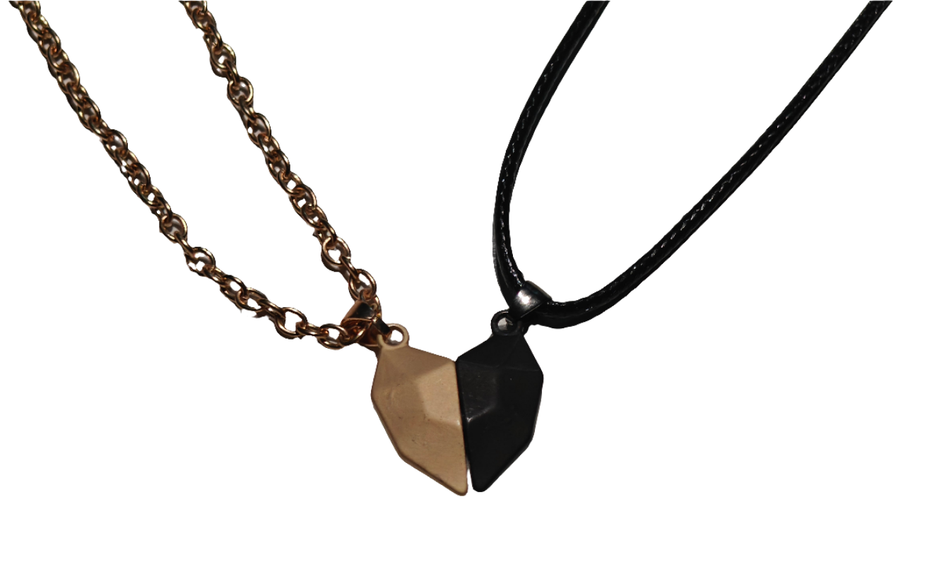 Tämä sydämen muotoinen kaulakoru jossa kaksi erillistä puolikasta on mainio lahja esimerkiksi vuosipäivää varten.